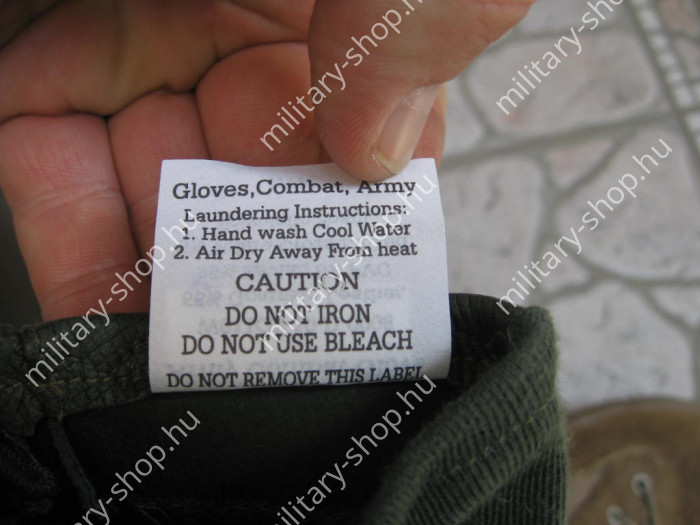 Az amerikai hadseregnél (U.S.ARMY . ) , rendszeresített hadi kesztyű .Színe : szürkés -zöld .Eredeti amerikai katonai felesleg ,ömlesztve érkezett .Közepes minőségű szállítmány , jött benne új , szép állapot , közepes állapot és rossz minőség érkezett belőle .A nagyon használtakon előfordul sérülés , szakadás .A bőr anyaga kecskebőr, a többi szövet rész ,35 % kevlár szövet, 5 % pvc ,5 % volara .A tapasztalat szerint a méretek szerintünk a ráírtakkal ellentétben egy számmal kisebbek ,tehát pl: az M-es inkább S-esnek felel meg.