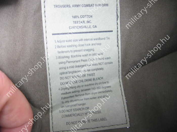 A nadrág eredetijét az amerikai partraszálló , és különleges bevetési egységek viselik . Rip- stop szövéssel készül .A zsebei tépőzárral zárhatóak .Érdekessége az új fejlesztésű nadrágnak , hogy nem csak a nagy méretű,combnál található zsebekkel látták el , hanem a bokánál található,két kisebb zsebbel is .A térdnél egy tépőzár segítségével,a nadrág anyaga szétnyitható és egy szívacs rakható bele.Az utcai harcoknál jól véd a sérülések ellen a szivacs. ( a szivacsot a gyártó nem mellékeli a nadrághoz ) . Az ágyék rész műanyag gombbal zárható,a szíjvonalnál 2 db patent van .