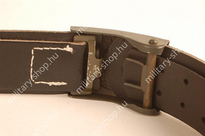 A csat és az öv ,nagyon jó minőségű másolatok. A csat vasból, az öv préselt marhabőrből készült. A bőrszíjon található méretlétra 16 cm állítási lehetőséget biztosít. Színe sötétzöld. A csat eredetijét 1940-től használta a WEHRMACHT ,az európai hadszíntereken. A bőrszíj méretei: 95, 100, 105, 110, 115, 120, 125, 130, 135 cm hosszúságban, szélessége: 45 mm. Az eredetijét a gyüjtemény rovatban találhatod meg. Gyűjteménybe és hagyományőrzésre ajánlom.