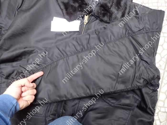 A terméket az angol M-tramp gyártja. A szabása megegyezik az eredetijével, mindössze a bélés színén változtattak ,a narancs színt elhagyták. A külső nagy méretű zsebek hajtókáját úgy készítették el, hogy a zsebbe bezárt állapotba ne juthasson be az esővíz. A bal felkaron található zsebbe íróeszközöket illetve apróbb tárgyakat is el lehet helyezni. A kézelőnél és a deréknál kötött gumis passzét használtak. A belső zseb bal mellkasnál található, vízszintes nyílású, cipzárral záródik. A termék eredetijét az 1950-es években készítették az USA haditengerészete (U.S.NAVY) részére. A dzseki teljesen műszálból készül, a töltete hollopfill. A nyakán a gallért úgy készítették el, hogy a műszőrme levehető a gallérról ( KÖNNYEBB TISZTÍTHATÓSÁG MIATT,KÜLÖN MOSHATÓ). Hideg szélben, hóesésben jó szolgálatot tehet a szőrmés gallér. A cipzárak fémből készültek. A dzseki mérsékelten vízálló.