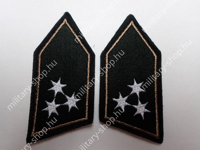 Eredeti hadi jelzések .Az ár 1 pár nyak hajtóka jelzésre vonatkozik.Raktári új állapot. A jelzés gyakorló zubbony hajtőkára ( nyak ) helyezhető fel ..A rendfokozati jelzés hátsó felére tépőzár van felvarrva.