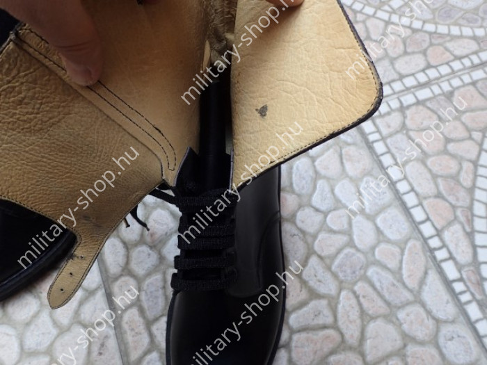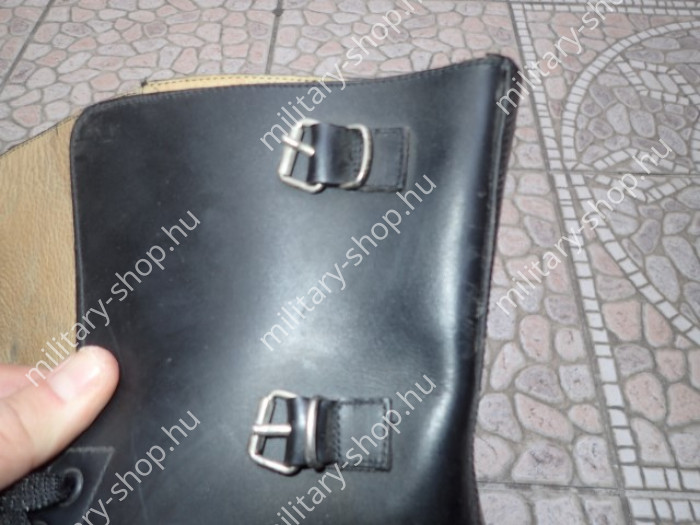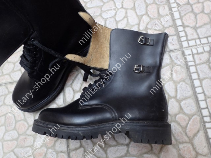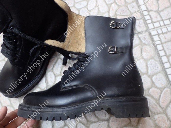 Színe fekete , teljesen raktári állapot .Katonai felesleg . A bakancs bőre nincsen kiszáradva, a raktározás tökéletes volt !Mindösszesen 76 pár van belőle !!Bélése finom marhabőr. Tiszti változat .