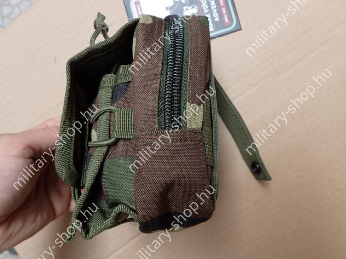 A tárolózseb közepes méretű.Alkalmas fényképezőgép , telefon , iratok , vagy egyéb kisebb tárgyak ( bicska öngyújtó , cigi , stb. tárolására. MOLLE rendszerű. Két rekesz van benne , az egyik osztott lapos, a másik elválasztó nélküli .