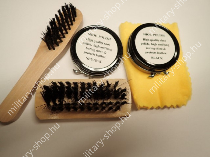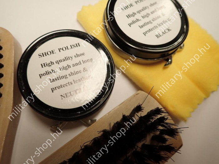Kis méretű cipőtisztító készlet ,mely praktikus utazásokhoz, rendőröknek , katonáknak kitelepülésekhez.
