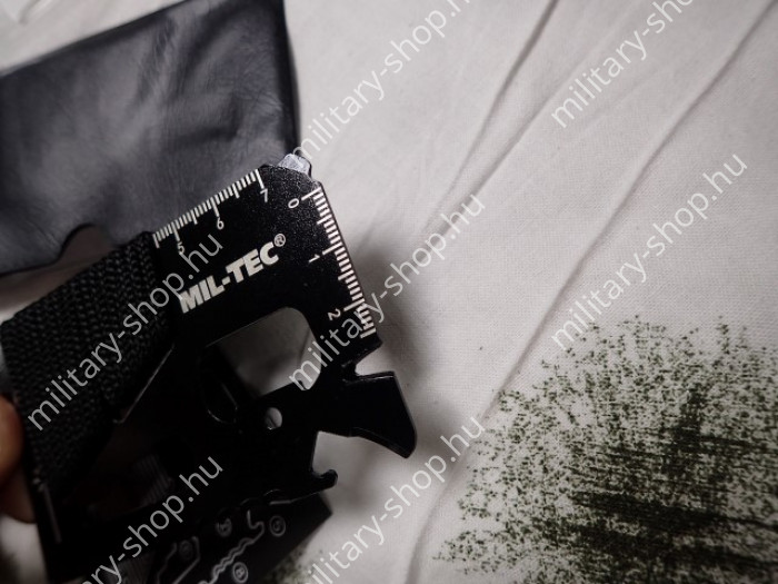 Bankkártyánál egy kevéssel nagyobb méretű túlélő eszköz. Pénztárcában , vagy a farzsebben is kényelmesen elfér. Van rajta csavarhúzó, konzervnyitó, penge, mérce, fűrész...stb.