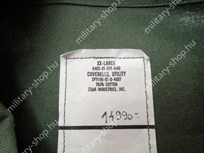 MEGNEVEZÉS : USA SZERELŐ OVERÁL , ZÖLD ,PAMUT , XXL MÉRET ,RAKTÁRI ÁLLAPOT